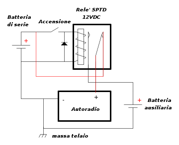 non credo,in pratica si va ad alimentare l'autoradio con la batteria ausiliare,ma per poco tempo...quindi è come se ci fosse un buffer tra le due batterie nel momento in cui si accende il motore..anche se temo che ci siano molte limitazioni con questo schema,per esempio non deve accendere l'autoradio a motore spento..!