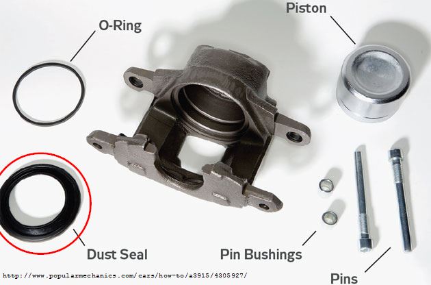 Il parapolvere ha appunto lo scopo di parare la polvere (sia quella atmosferica che quella prodotta dall'attrito pastiglia/disco) affinchè non si intrometta nel delicato accoppiamento pinza/pistoncino che deve garantire ermeticità rispetto al fluido dei freni ed anche buono scorrimento per evitare che il pistoncino si blocchi nella sede; il parapolvere, visivamente, appare come una specie di soffietto che avvolge il pistocino in corrispondenza della sede sulla pinza; un'immagine è più chiara di molte parole (vedi particolare cerchiato in rosso)