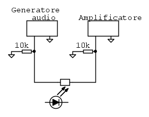 Io ci metterei una fotoresistenza collegata a cavallo tra l'uscita del generatore e l'ingresso dell'amplificatore