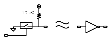 Invece si potrebbero usare questi interruttori elettronici per implementare delle porte NOT (vabbè, l'uscita ha impedenze diverse a seconda del livello logico, ma trascuriamo queste inezie
