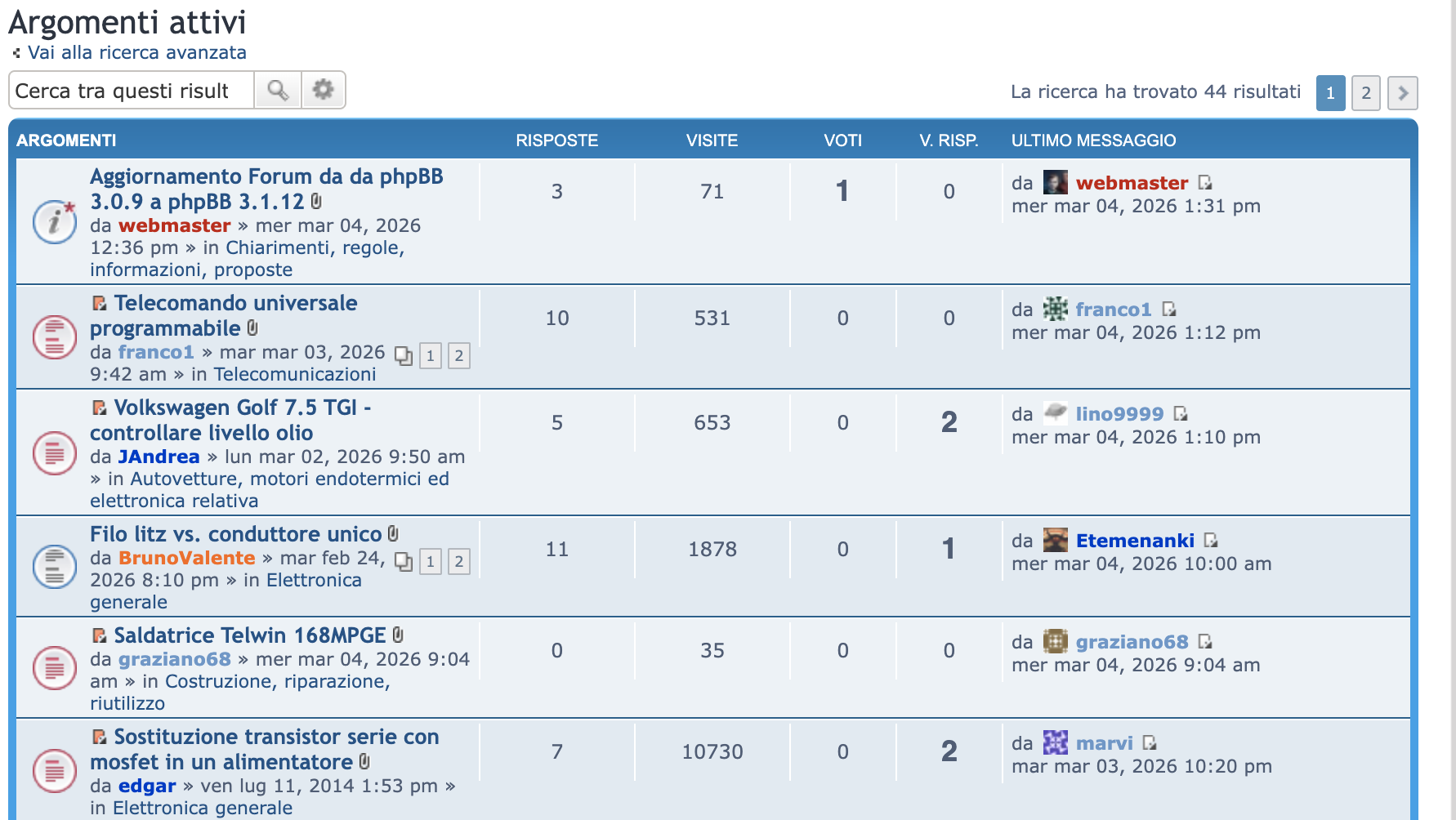 Dopo molti anni, ho finalmente trovato un po' di tempo per aggiornare il software del forum.