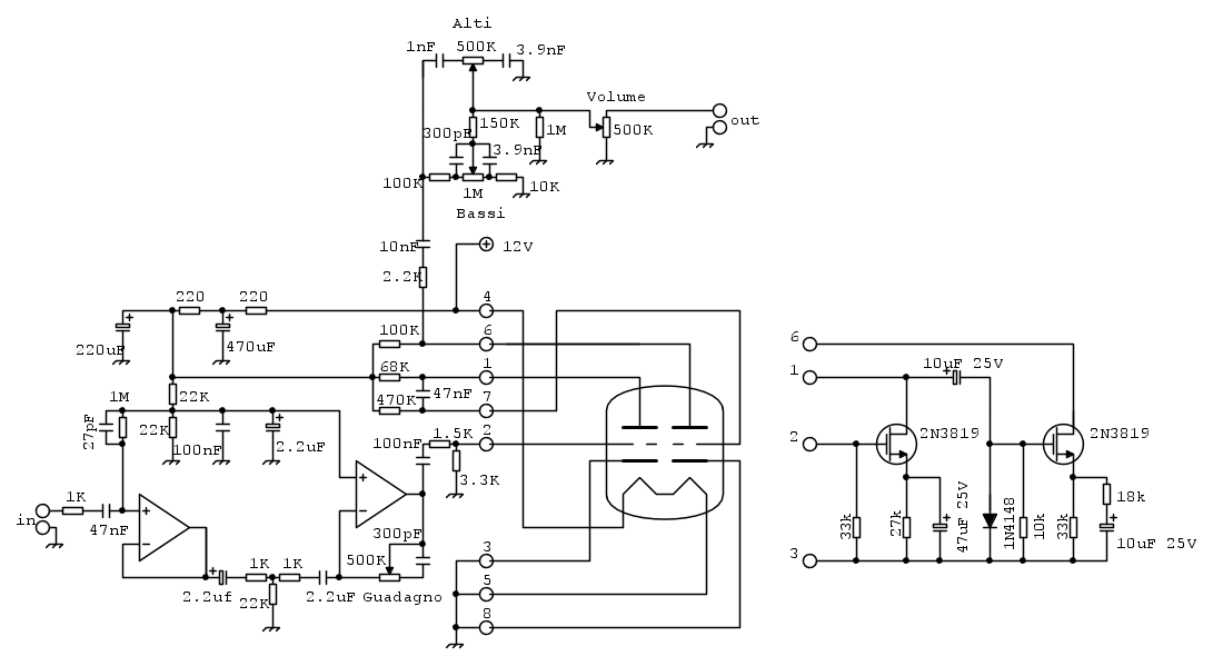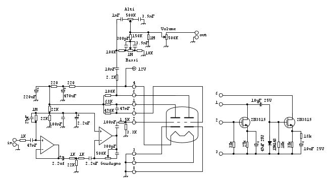Non serve dire che questo circuito simula in qualche modo la valvola solo in questa applicazione e che non va assolutamente utilizzato in altri circuiti.