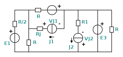 1) determinare le tensioni Vj1 e Vj2 ai capi dei generatori (di corrente) J1 e J2