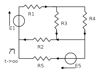 Trova la corrente I2 quando t->oo, cioe` a regime. Basta sostituire alla L il solito cortocircuito, questa volta con l'interruttore chiuso: