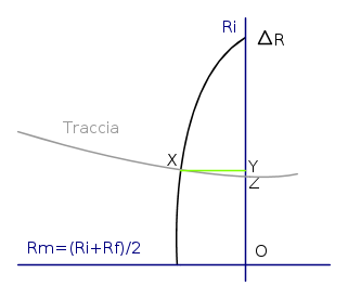 - mentre la traccia "passa" sotto la puntina questa si "allontana" dal segmento