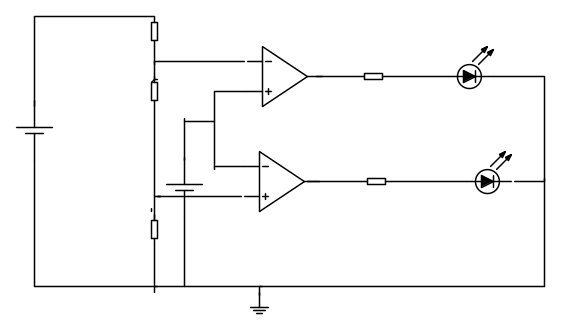 6) Con un LM393 e un po' di resistenze si puo` fare sia la versione a singolo led che a due led. Con un LM358 invece per avere la versione a singolo led bisogna aggiungere due diodi, per i due led non ci sono problemi.