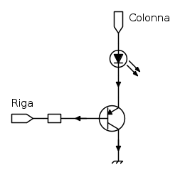 Le colonne vengono collegate a massa de un NPN che deve sopportare la corrente di tutti i LED della colonna accesi contemporaneamente.