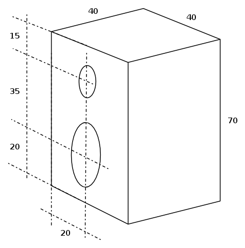 Le misure sono espresse in cm, i diametri dei fori per woofer e tweeter devi ricavarteli dalle misure delle flange di fissaggio dei trasduttori.