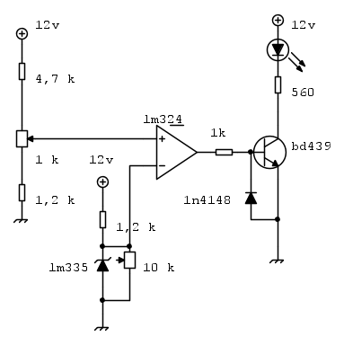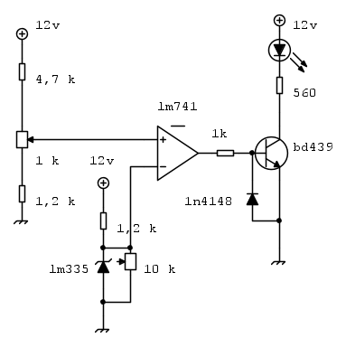 Per misurare la temperatura vorrei utilizzare un LM325 e con un comparatore tipo LM329 comparare il segnale con uno generato da un partitore con trimmer.