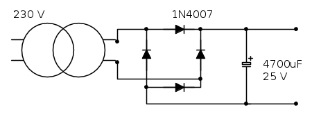 il trasformatore di cui avevo già parlato in questo topic,il ponte FBU4G e un condensatore elettrolitico da 4700uF.