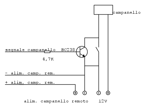 L'altro circuito il pulsante che comanda la suoneria remota ha una tensione di 12v e per far partire il suono remoto devo cortocircuitare il circuito.