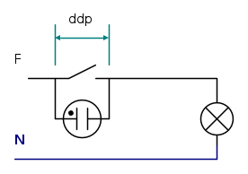 dunque la lampada (non del tipo ad incandescenza)connessa in parallelo ai contatti dell'interruttore, si trova sottoposta alla ddp presente ai capi dell'interruttore quando questi è aperto e quindi la lampada si accende, mentre quando l'interruttore è chiuso la ddp ai suoi capi è zero quindi la lampada è spenta.
