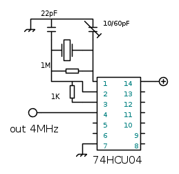 Ho poi aggiunto un condensatore variabile (ma questo e' facoltativo) che permette di correggere piccole differenze di oscillazione del quarzo.