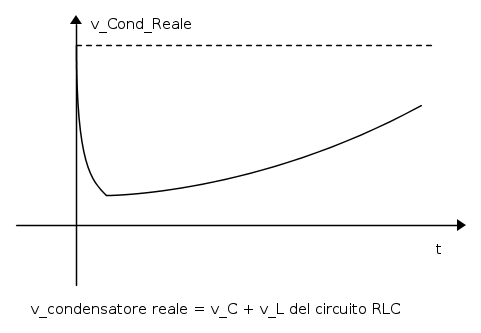 ; perciò la potenza in gioco all'istante iniziale sarebbe infinita (cosa che è fisicamente non possibile), giusto?Inoltre se un condensatore reale presenta tra le proprie armature sia un campo elettrico che magnetico (seppur molto molto piccolo), può essere schematizzato come serie di un condensatore "ideale" (cioè con il bipolo tale che