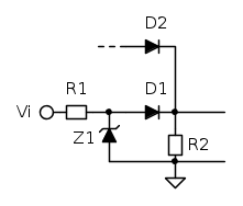 la tensione sull'anodo di D1 (o sul catodo di Z1) è la approssimatamente la tensione nominale del diodo Zener.Il secondo caso è un clipper.
