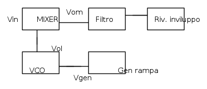 La tensione Vom che arriva al filtro ha una frequenza che varia con una velocità che dipende dalla pendenza del generatore di rampa.