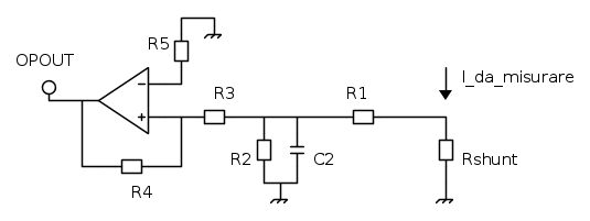 Utilizzo il condensatore C2 per filtrare un po' il segnale proveniente dallo shunt e tagliare qualche disturbo ad alta frequenza.