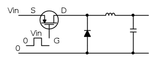 Ovviamente il generatore di onda quadra che ti accende il MOS NON deve essere riferito al riferimento negativo del BUCK.