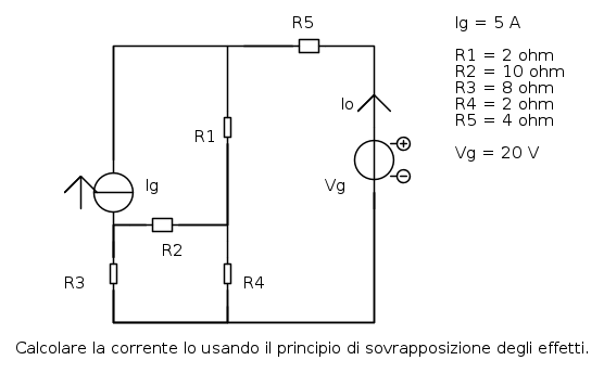 Esercizio con sovrapposizione degli effetti