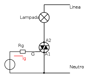 la Vg deve essere applicata tra a1 e gate, ovviamente tra a1 e a2 oppure gate e a2 c'è sempre tensione di rete se il triac è aperto.