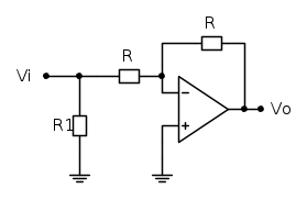 Questo è un circuito che, ad interruttore aperto, si comporta come un inseguitore di tensione, mentre, a interruttore chiuso, si comporta come un amplificatore invertente con guadagno pari a -1.