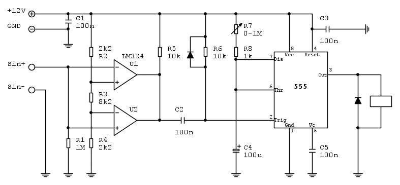 Rileggendo il post ho notato un dettaglio che non avevo specificato. Anche se il segnale rimane alto o basso per un tempo superiore a quello impostato sul 555 il contatto non si deve richiudere! Cioè il contatto si deve chiudere per il tempo impostato soltanto in presenza di una fronte di salita o discesa del segnale. Quando invece il segnale non varia, è cioè sempre basso o sempre alto, il 555 non deve ripartire...