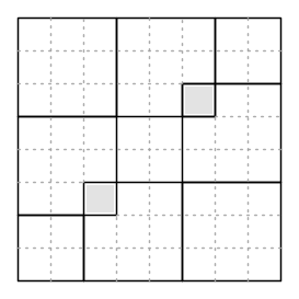 Nella prima figura, ciascuno dei quadrati 3x3 contiene 4 tracce, e ci sono massimo 2 pezzi persi, (contato due volte), su entrambe le caselle grigie.