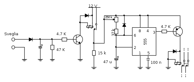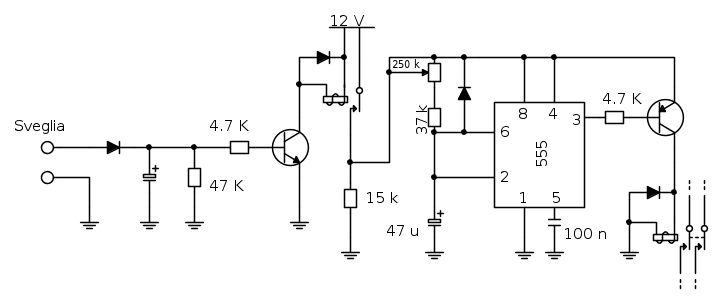 Non mi è chiaro... come si comporta il circuito? io credevo che quando arrivasse la corrente dalla sveglia al circuito partisse il timer per 15 secondi, e poi si eccitasse il relè... se non fosse così, cercherò di riadattare il progetto ;)