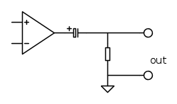 Che poi sarebbe a dire che all'accensione l'uscita dell'opamp sale a circa metà alimentazione, allora dopo il condensatore si osserva la carica e la tensione all'uscita tende a zero esponenzialmente con la costante di tempo RC