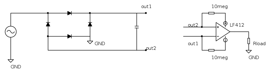 Balun (=trasformatore) con presa centrale e due diodi come nello schema che avevi fatto?