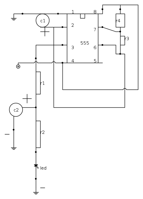 salve sto assemblando questo schema sulla breadboard , ma il 555 diventa incandescente , e mi fa solo il fade in senza il fade out non ho la resistenza variabile R3 e ne ho messa una fissa da 100k e non ho quella da 200 ohm ma ne ho messe 3 da 56 ohm una da 10om e una da 20 ohm in serie e raggiungo i 198 ohm ora metto lo schema copiandolo dalla mia breadboard e poi incollo lo schema originale
