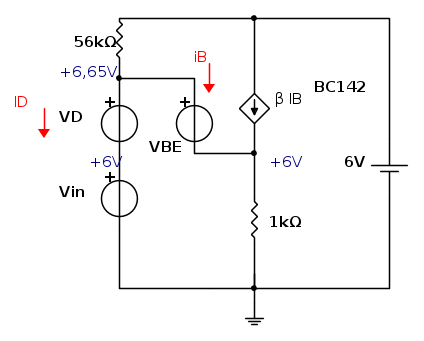 I_D=-\frac{6,65\text{ V}-6\text{ V}} {56\text{k}\Omega}-I_B