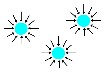 Queste sono le forze che subisce una molecola d'acqua quando è immersa nel fluido: come vedi la risultante è nulla.