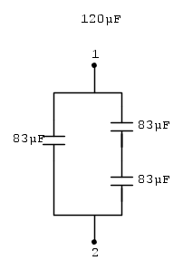 La tua batteria misura 248,8 microfarad stella, e a triangolo ogni condensatore è di 83 microfarad. La misura che hai fatto di 124,35 microfarad sui morsetti 1 e 2 è giusta perché devi considerare che hai misurato un condensatore con altri due in serie parallelo al primo.Ho misurato su tutti e tre i morsetti del condensatore 120 uF (1-2; 1-3; 2-3) pertanto il condensatore è da buttare oppure è ancora utilizzabile?