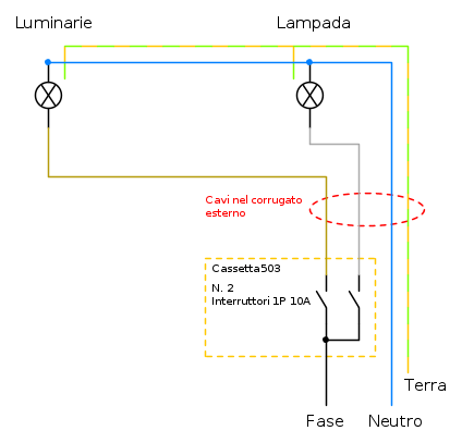 Attualmente uso un solo interruttore per una lampadina esterna + illuminazione natalizia. Di conseguenza, nel periodo di Natale devo staccare i fili dalla lampadina e collegarli all'illuminazione, e viceversa per il periodo rimanente.