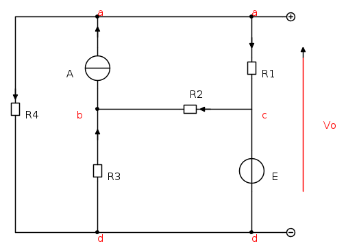 La particolarità in questo caso sta n el fatto che uno dei potenziali di nodo,in questo caso quello al nodo c e che dovrebbe essere un potenziale noto è espresso in funzione di una corrente che sussiste sullo stesso nodo.