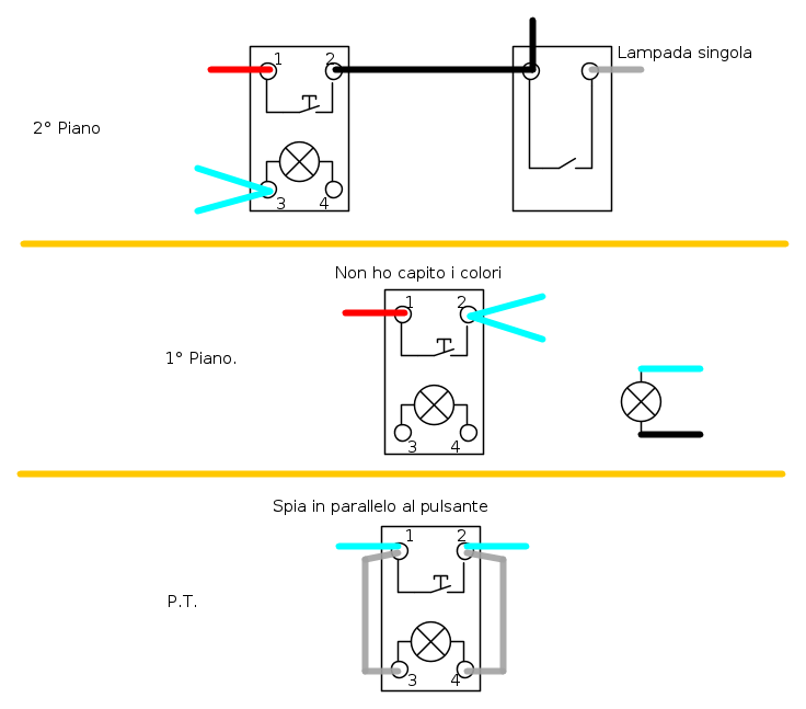 Il pulsante PT in realtà è quello del primo piano e i collegamenti sono corretti.