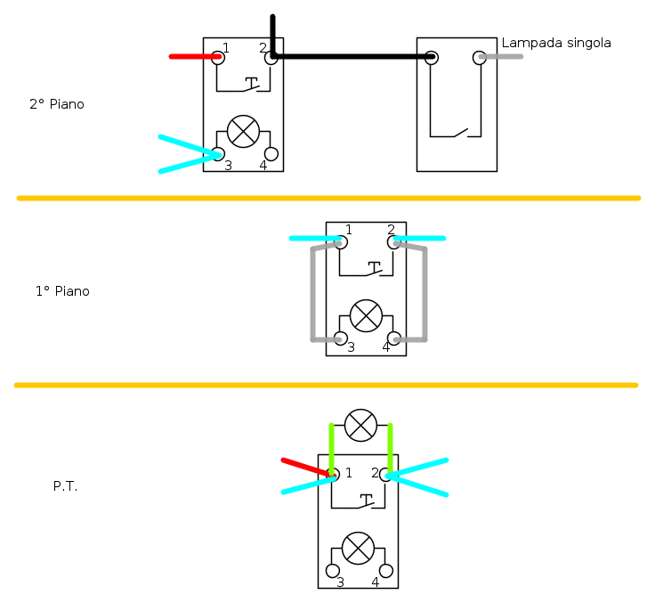 solo nel pulsante del secondo piano il nero arriva prima al pulsante e da lì va all'interruttore ma è irrilevante.