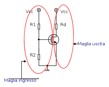 Nello studio della polarizzazione di un MOSFET si individuano due maglie.