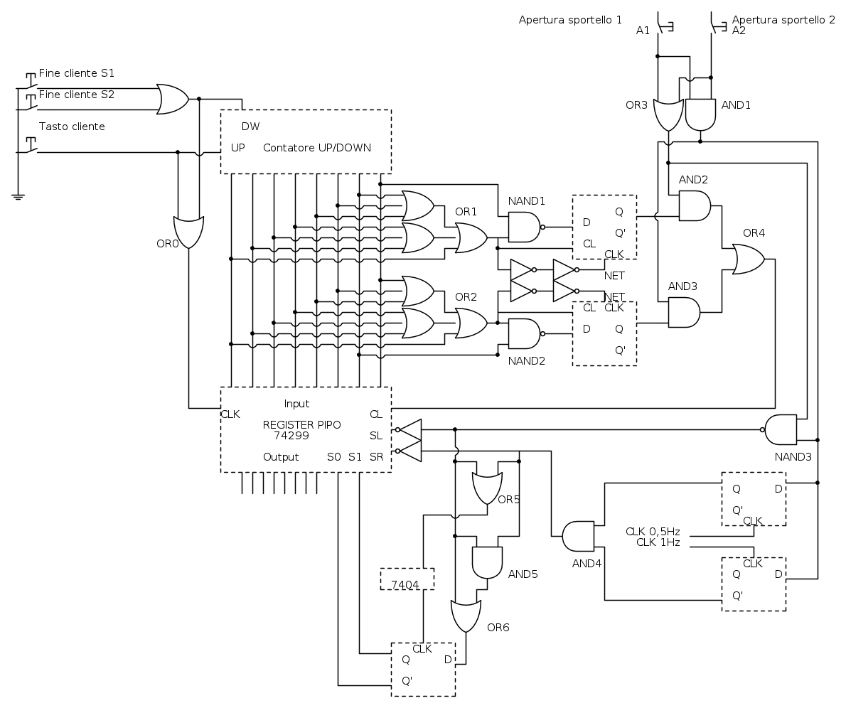 Sia per OR1-NAND1 che per OR2-NAND2 occorre controllare il numero di addetti operativi in quel momento (A1 e A2)