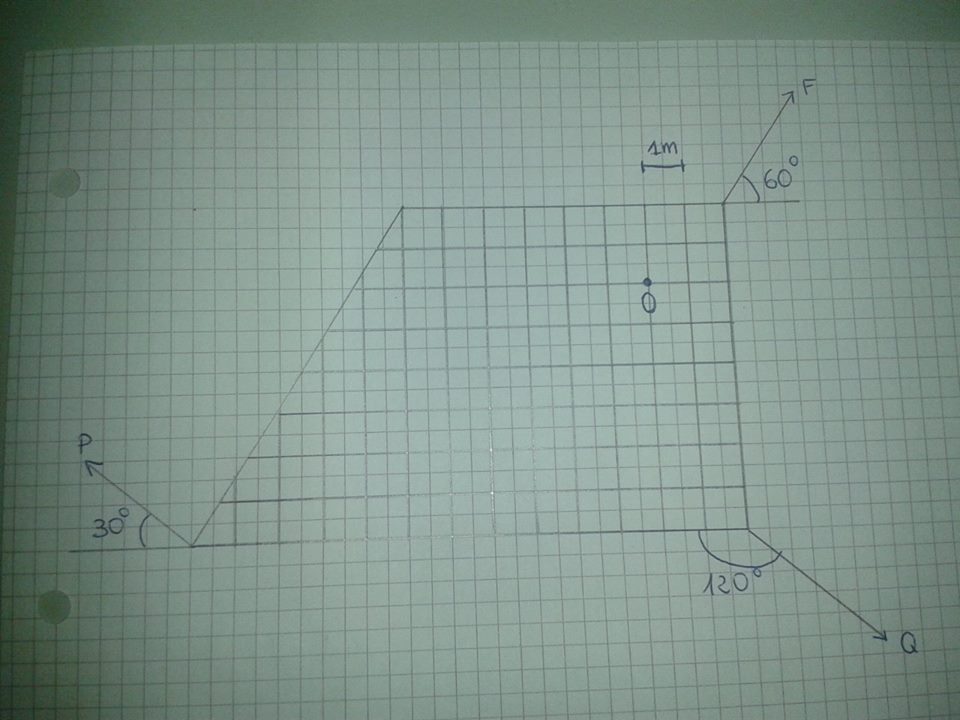 Direi di ricavare la forza risultante scrivendo le equazioni delle rette
