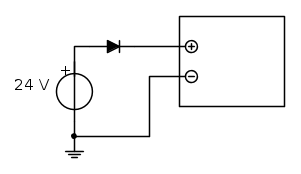 Ho un componente a 24 VDC che assorbe, facciamo 25 A, e vorrei mettere sul negativo un diodo in modo tale che, nel caso in cui il cablatore sbagli e inverta la polarità dell'alimentazione, non bruci tutte cose.