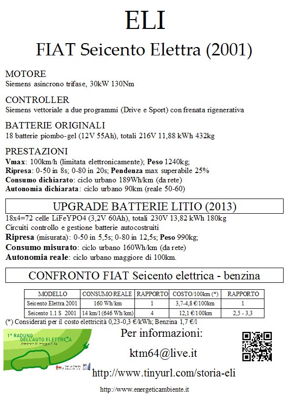 Per chi vuole vedere (in Lombardia) qualche auto elettrica già circolante, e anche la mia Eli, domenica 11 Maggio dalle 14 c'è un raduno all'Iper La Grande Milano al Portello: