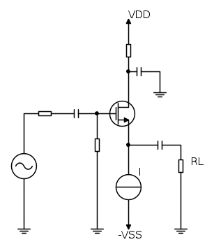 Non riesco a capire perché quando si fa lo studio in AC di un MOSFET Common Drain si deve eliminare il resistore che connette il Drain a massa, collegando Drain e massa direttamente.