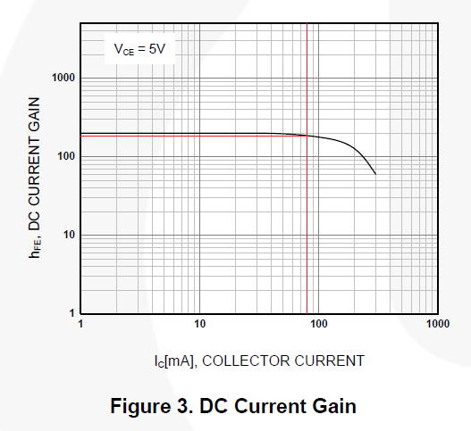 PietroBaima ha scritto:Si vede che il beta minimo, per una corrente di collettore di 80mA circa è poco sotto a 200.