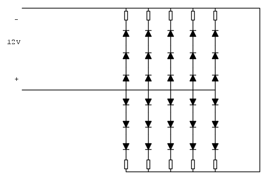 se controlli vedrai che con 5W (dissipati in calore) alimenti tutti i tuoi LED