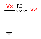 Lascia perdere la terra qui, come ti è già stato ricordato da Foto UtenteRussell c'è solo da dire che la differenza di potenziale (Vx-V2) fra i due terminali del resistore R3 è pari alla tensione che va a cadere su R3 a causa della corrente che la attraversa (legge di Ohm).