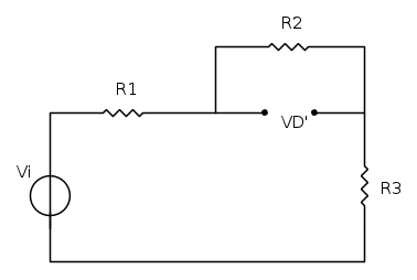 e quindi sapendo che I_{1}=I_{2}=I_{3} ottengo che V_{D}'=\frac{R_{2}*V_{i}}{R_{1}+R_{3}}