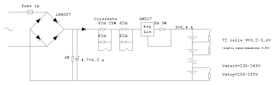 Alimentatore 220 V AC -> 260V DC per bilanciamento batteria