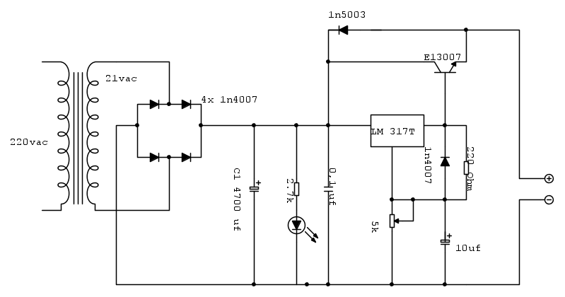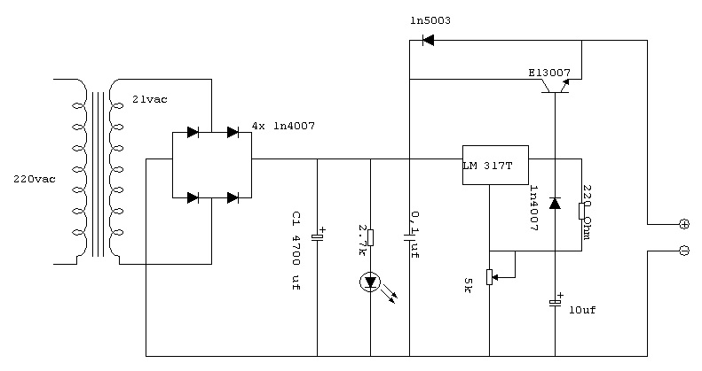 Ciao a tutti di recente costruito il mio primo alimentatore a tensione variabile (4 ampere) ,per il progetto ho preso spunto da libri e qualcosa su internet ,cosi ho buttato giu il seguente schema in allegato, prima di montare tutto su una basetta ho fatto dei collegamenti "volanti" e tutto sembrava funzionare per il meglio,cosi monto tutto su una basetta e facendo gli stessi test effettuati in precedenza sul circuito "volante" mi sono accorto che mettendo un carico che assorbe 1,2 ampere a 12 volt l alimentatore a volte eroga perfettamente questa corrente (anche correnti superiori d 2- 3 ampere) altre volte invece la tensione scende a 0 e il led si spegne come se mettessi l uscita in cortocircuito ,questo capita con qualunque carico...ho notato che quando capita questo lm317 scalda parecchio (tutto e adeguatamente raffreddato ) ....